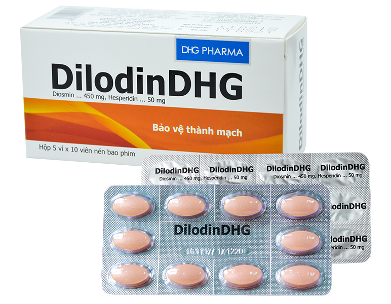 TÍNH CHẤT: Thành phần chính của DilodinDHG là phân đoạn flavonoid tinh khiết (diosmin, hesperidin), dạng vi hạt, có tác dụng làm bền thành mạch. Thuốc tác dụng bằng cách ức chế men hyaluronidase, một loại enzym làm tăng tính thấm của mao mạch. Khi enzym này thừa thì gây hiện tượng xuất huyết dưới da.
